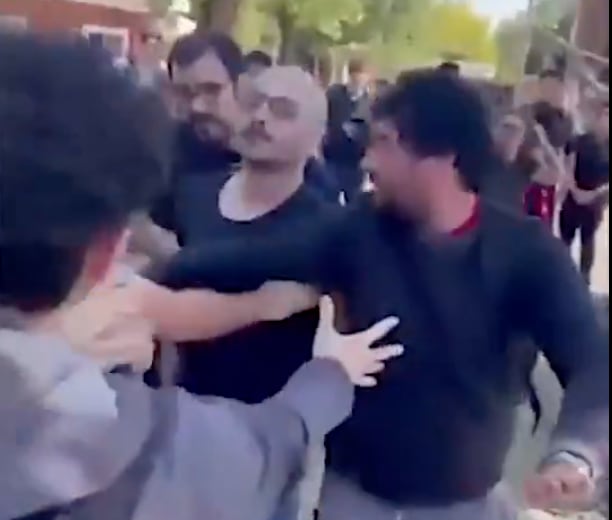 Ante la negativa de detener la filmación del encuentro, el profesor estalló: “Te dije que no me filmes. Te voy a tirar el celular si me filmas así nomás”, advirtió Tumini segundos antes de abalanzarse contra el joven que registraba el reclamo.