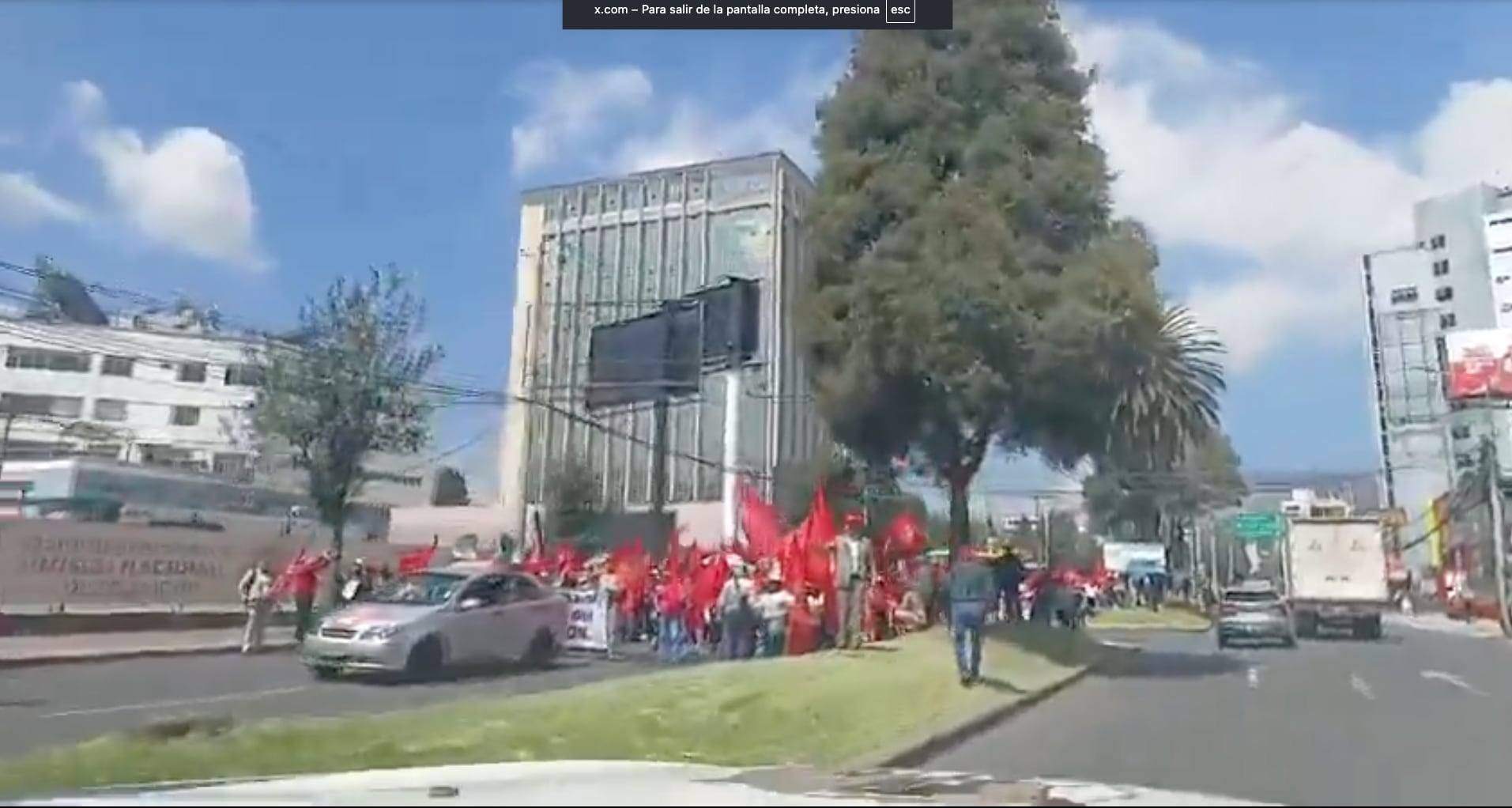 Además, la AMT indicó que la manifestación se desarrolla en el sector de la av. República y Eloy Alfaro, generando congestión en la zona.