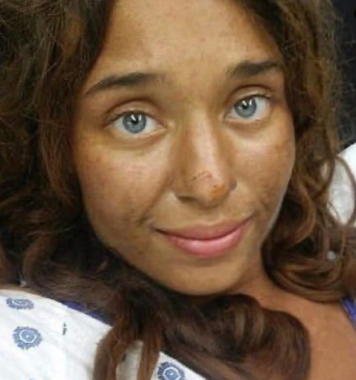 La joven presentaba signos visibles del tiempo en el bosque como cicatrices, picaduras de insectos, suciedad acumulada y un marcado bronceado producto de la exposición prolongada al sol.