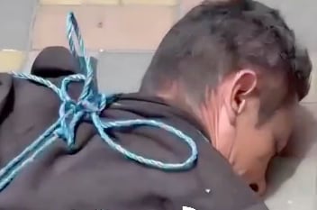 En las imágenes viralizadas, se observa al sujeto amarrado de pies y manos en el piso, mientras varias personas lo increpan por lo ocurrido.