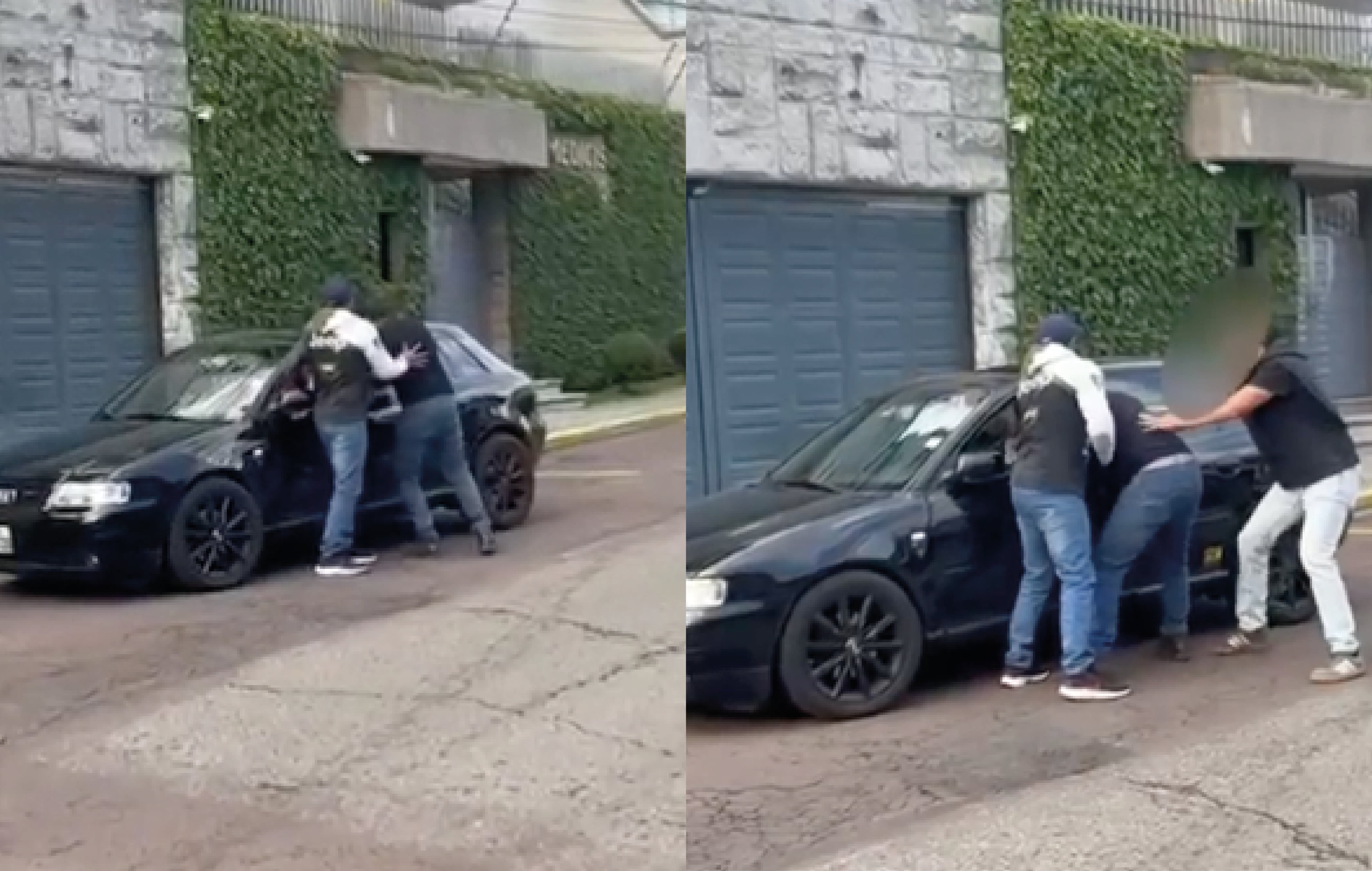 En el video se evidencia cómo intenta abrir la puerta del vehículo, mientras la menor permanece dentro, visiblemente afectada.