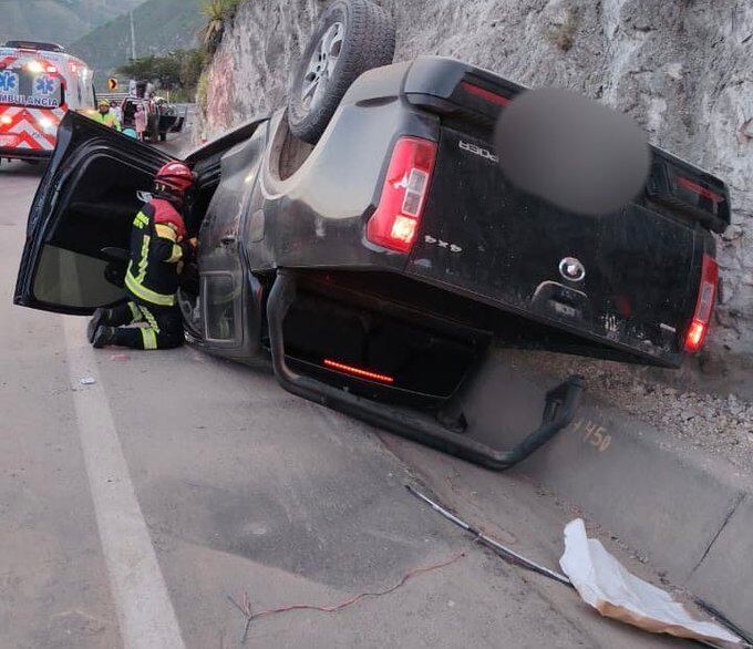 Una emergencia vial se registró en la mañana de este domingo 12 de abril en la Panamericana Norte, sector de Guayllabamba, donde una camioneta 4x4 de color negro se volcó por causas aún no determinadas.
