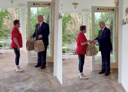 Tras recibir el pedido, Trump decidió darle una propina a la trabajadora, lo que sorprendió a la repartidora.