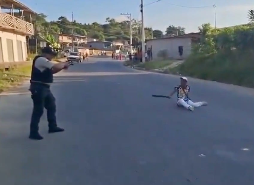 Un video que circula en redes sociales captó el dramático momento en el que un adulto mayor desafió a varios servidores policiales utilizando un machete, en un incidente registrado en la vía a Chamanga, cantón Pedernales.