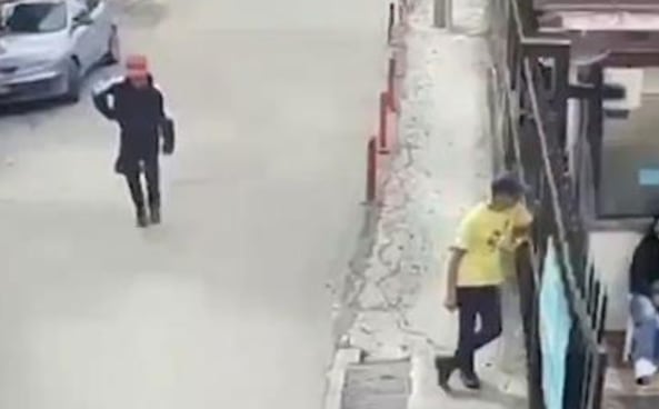 En ese momento, un hombre vestido de negro se acerca por la espalda, camina por el lugar durante unos segundos y, sin mediar palabra, saca un arma blanca y apuñaló a la víctima.