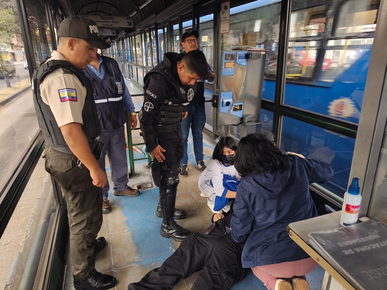 De acuerdo con el reporte preliminar, un guardia de seguridad y una recaudadora quedaron inconscientes generando alarma entre pasajeros y personal operativo, quienes presenciaron la atención de primeros auxilios.