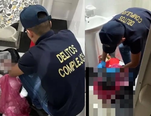Durante el allanamiento, además de la búsqueda de la menor, los agentes encontraron los ocho fetos en diferentes etapas de gestación en bolsas de basura, lo que amplió el alcance de la investigación.