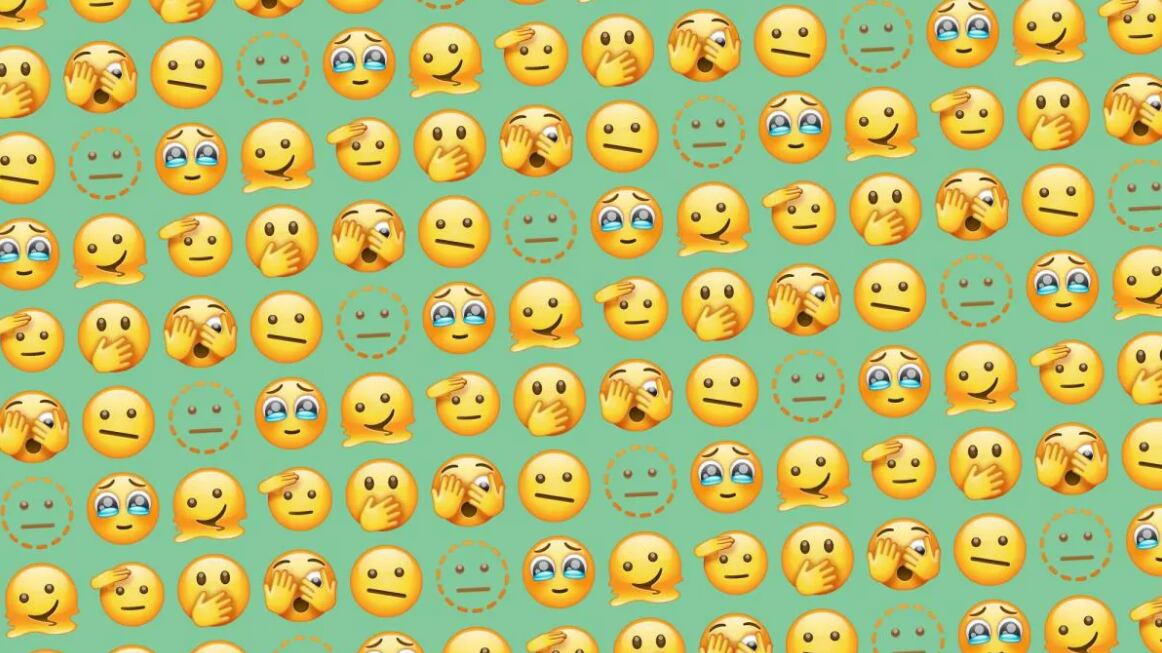 La actualización de WhatsApp de hoy incluye siete nuevos emojis de caritas sonrientes, cara derretida, cara con los ojos abiertos y la mano sobre la boca, cara con ojo asomando, cara de saludo, cara de línea punteada, rostro con boca diagonal, cara conteniendo las lágrimas.